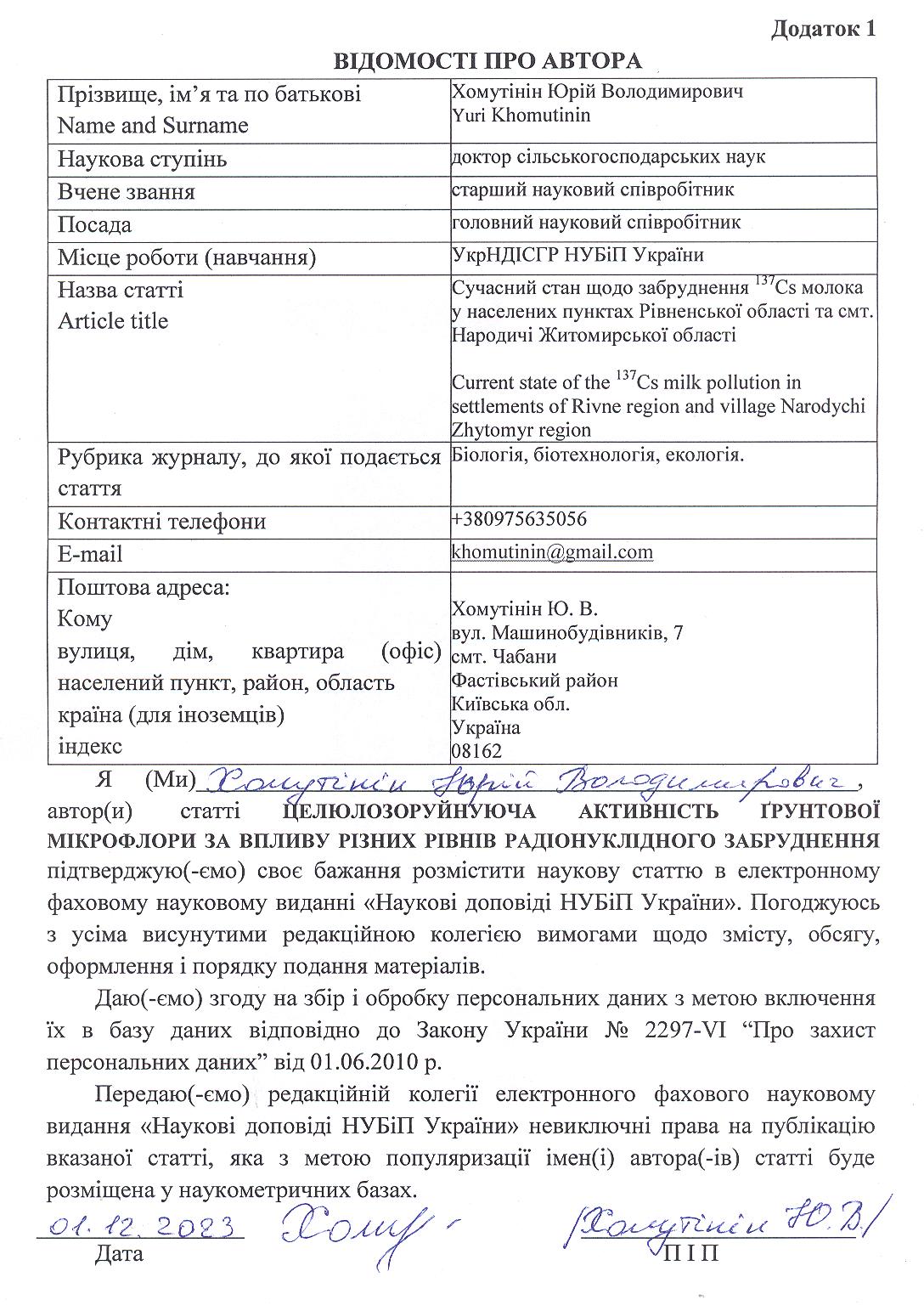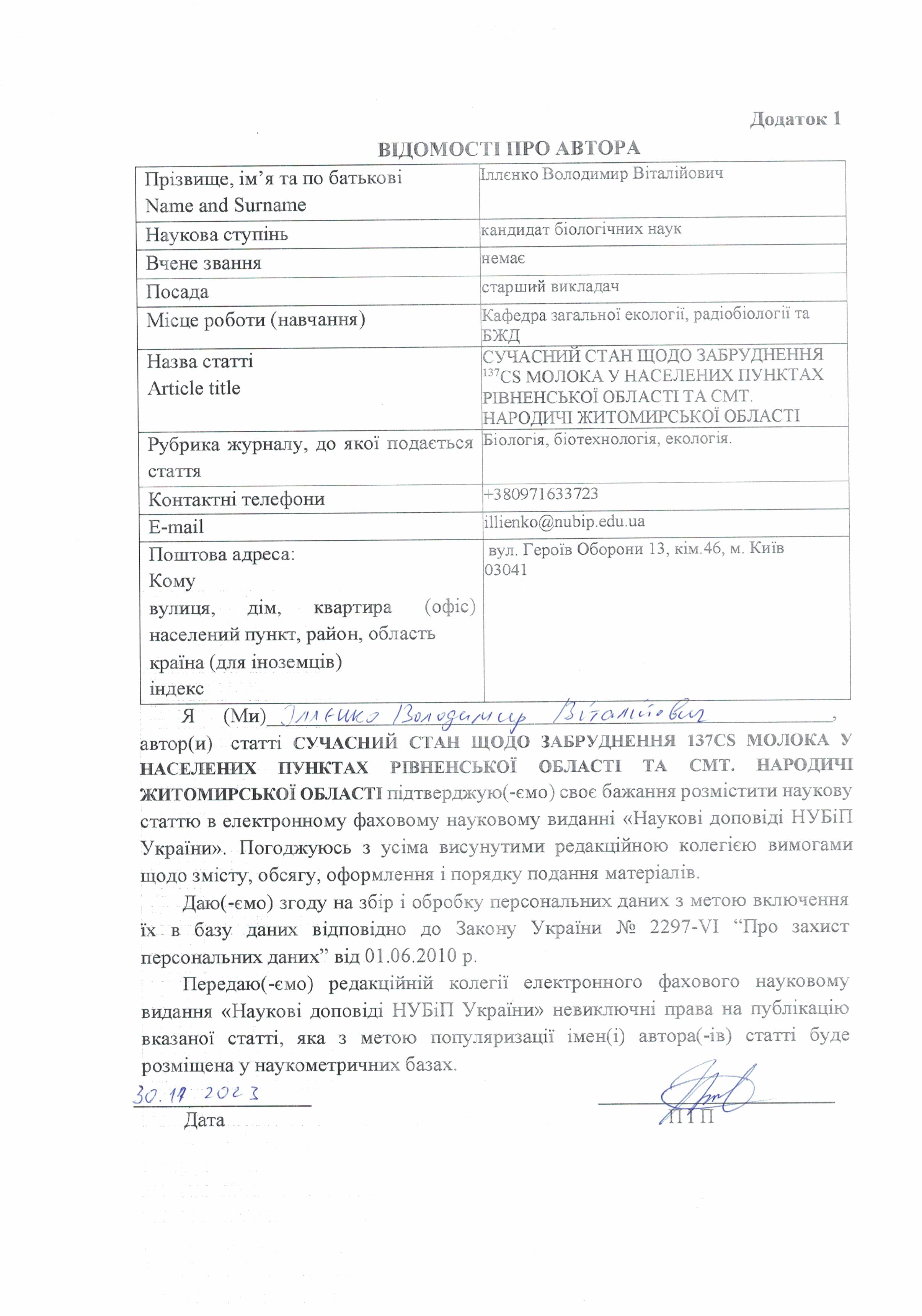 Maloshtan I., Polishchuk S., Kashparov V., Yoschenko V. (2017). Assessment of radiological efficiency of countermeasures on peat-bog soils of Ukrainian Polissya // Journal of Environmental Radioactivity, Volumes 175–176, September 2017, Pages 52–59. http://doi.org/10.1016/j.jenvrad.2017.03.026
