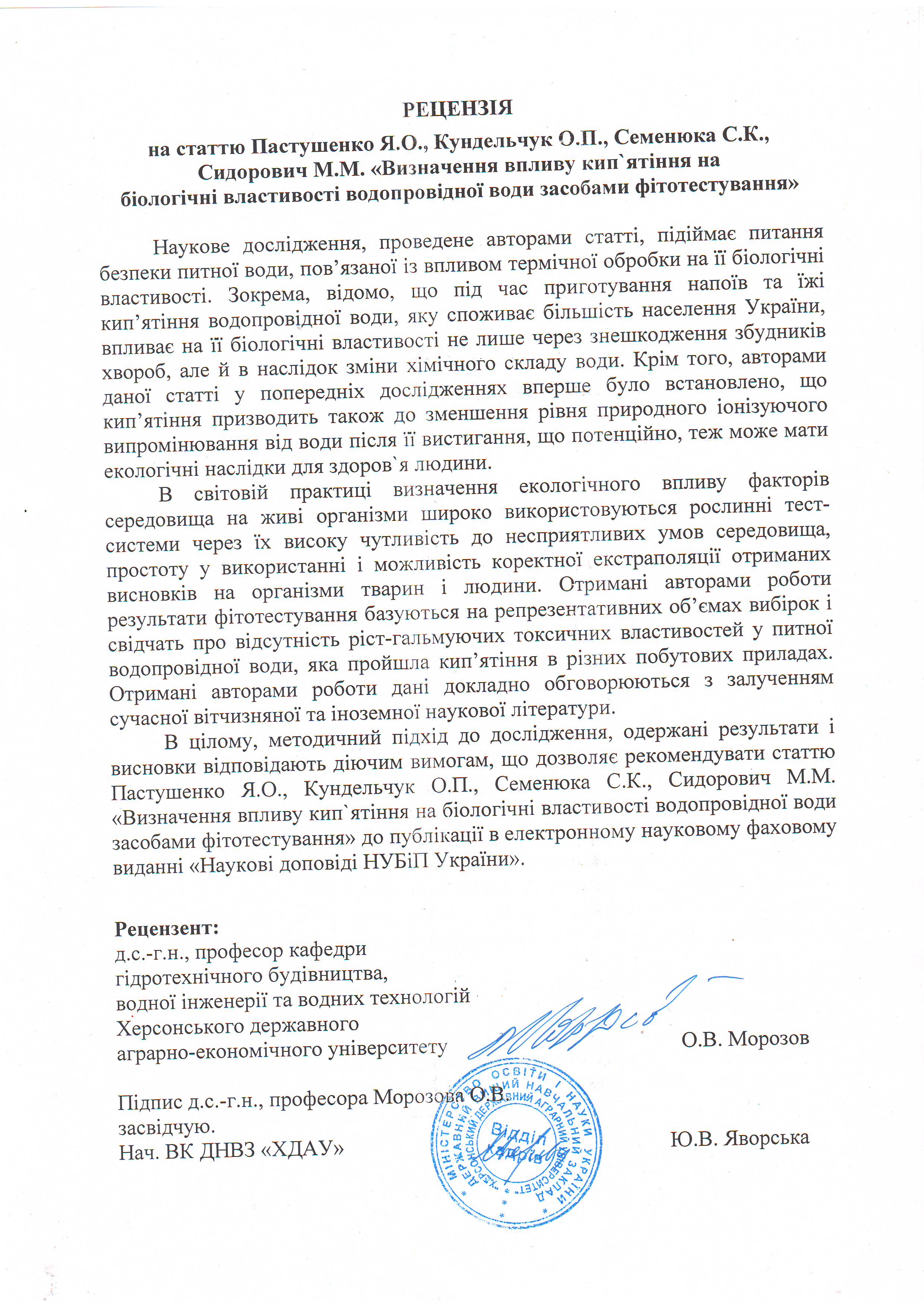 Визначення впливу кип`ятіння на біологічні властивості водопровідної води засобами фітотестування