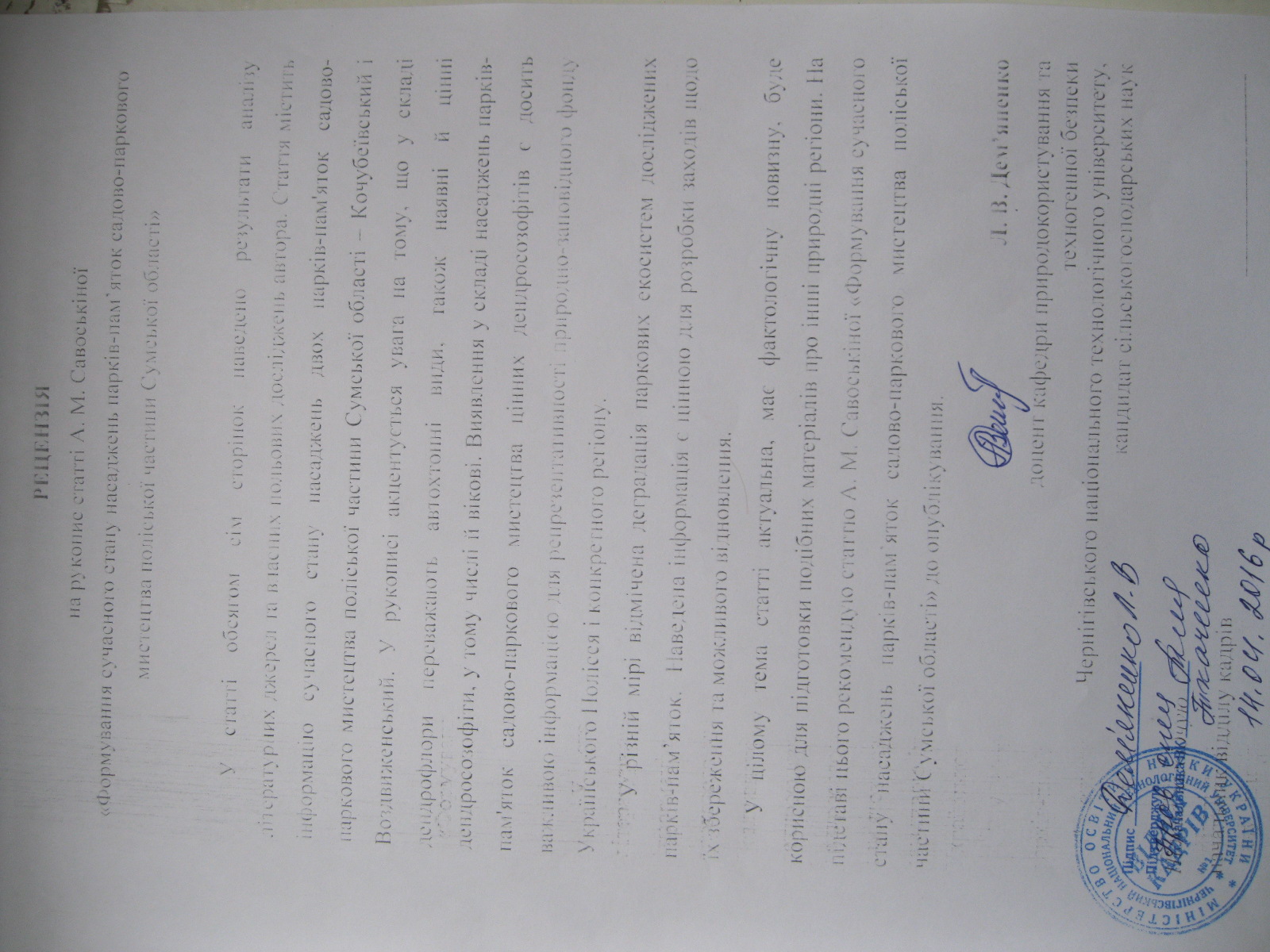 Савоськіна А. М. Історія формування та сучасний стан мережі парків-пам'яток садово-паркового мистецтва Українського Полісся / А. М. Савоськіна // Науковий вісник Східноєвропейського національного університету імені Лесі Українки: наук. журн. – Біологічні науки. – 2015. – № 2 (302). – С. 38–42.