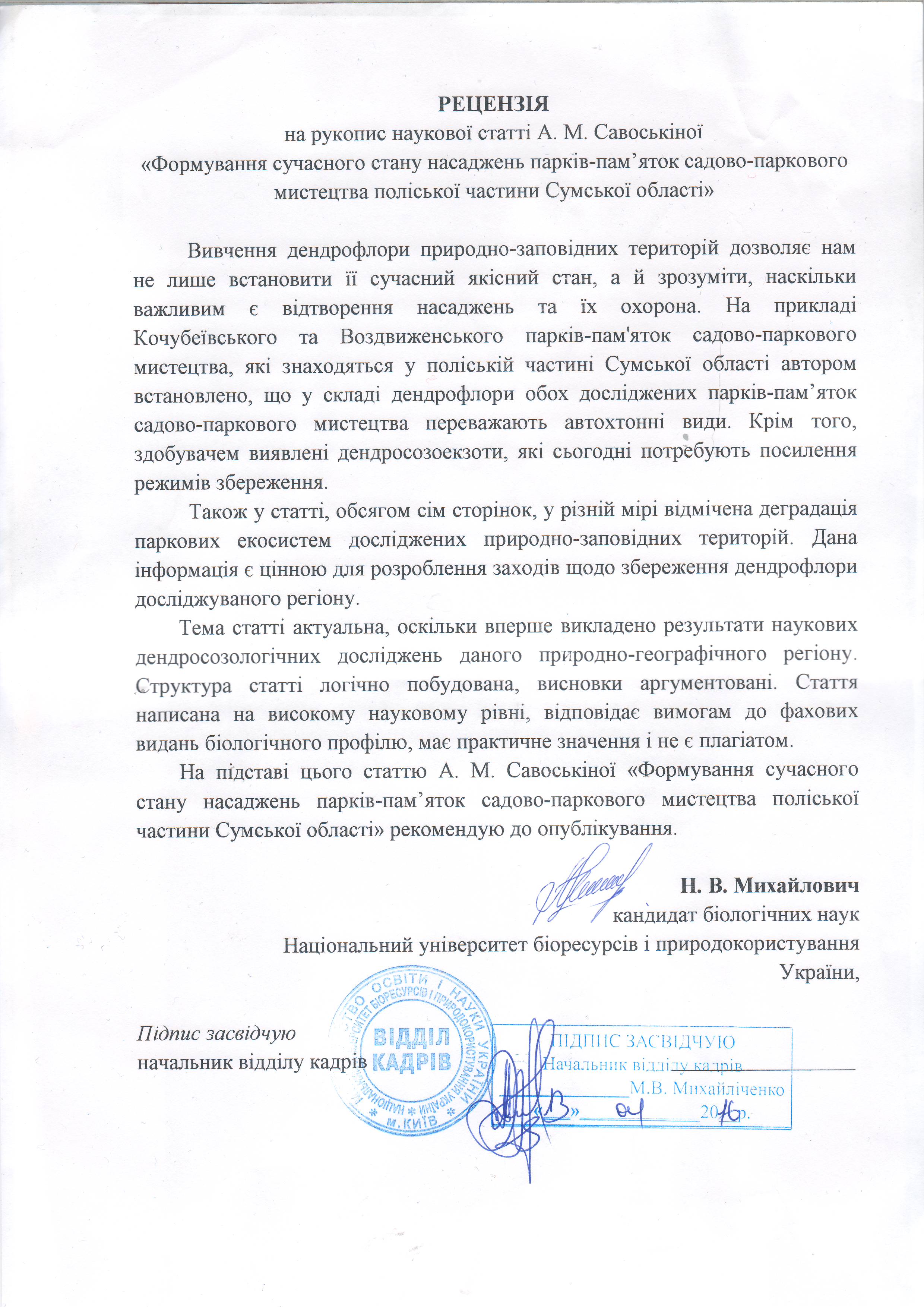 Savoskina A. M. Istoria formuvannia ta suchasnyi stan merezhi parkiv-pamiatok sadovo-parkovoho mystestva Ukrainskoho Polissia [Historical features and current state of the network of parks-monuments of landscape art of the Ukrainian Polissya], Naukovyi visnyk Skhidnoievropejskoho nacionalnoho universytetu imeni Lesi Ukrainky: nauk. zhurn. – Biolohichni nauky. – 2015. – № 2 (302). – р. 38–42.