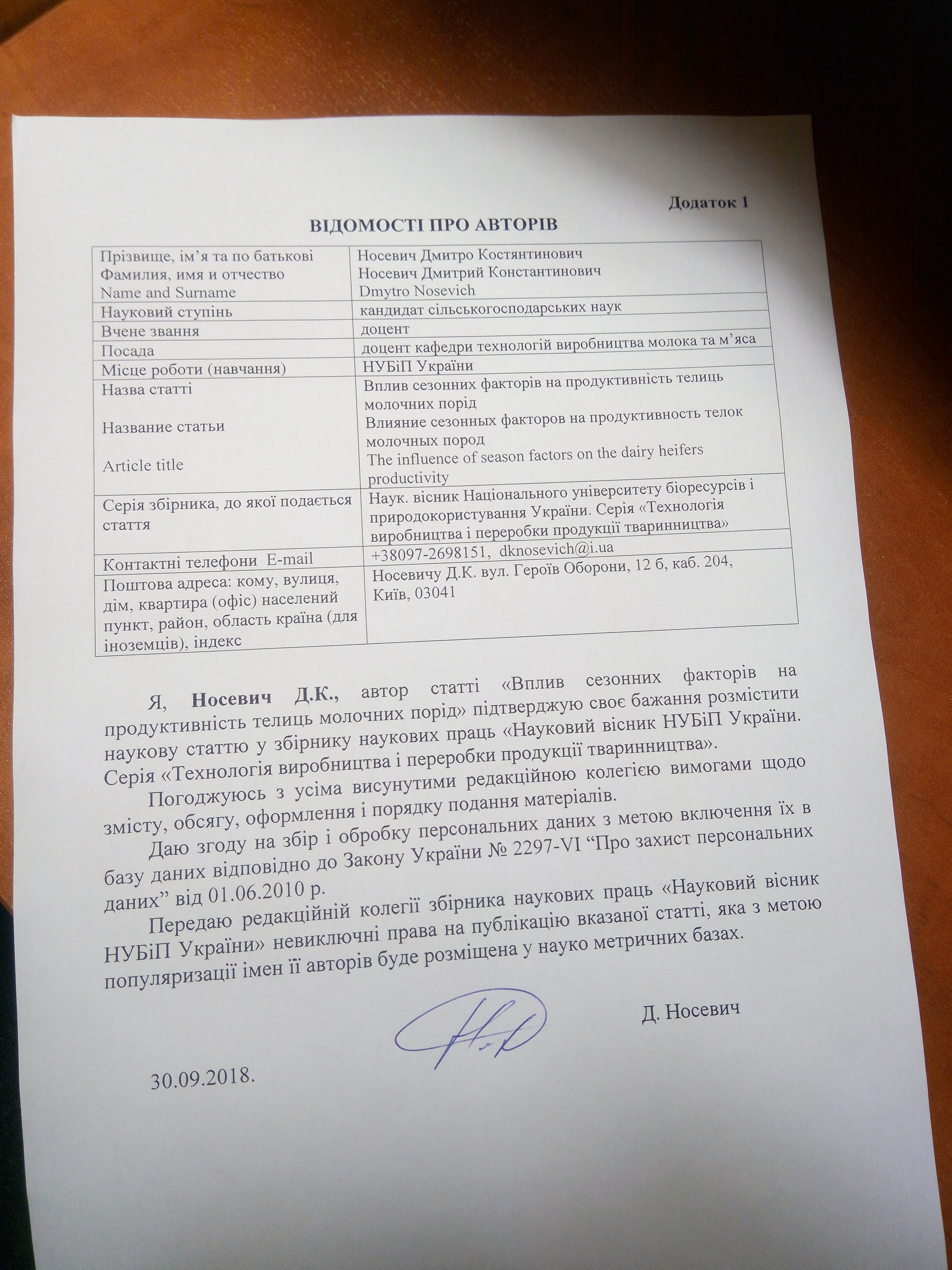 Вплив сезонних факторів на продуктивність телиць молочних порід
