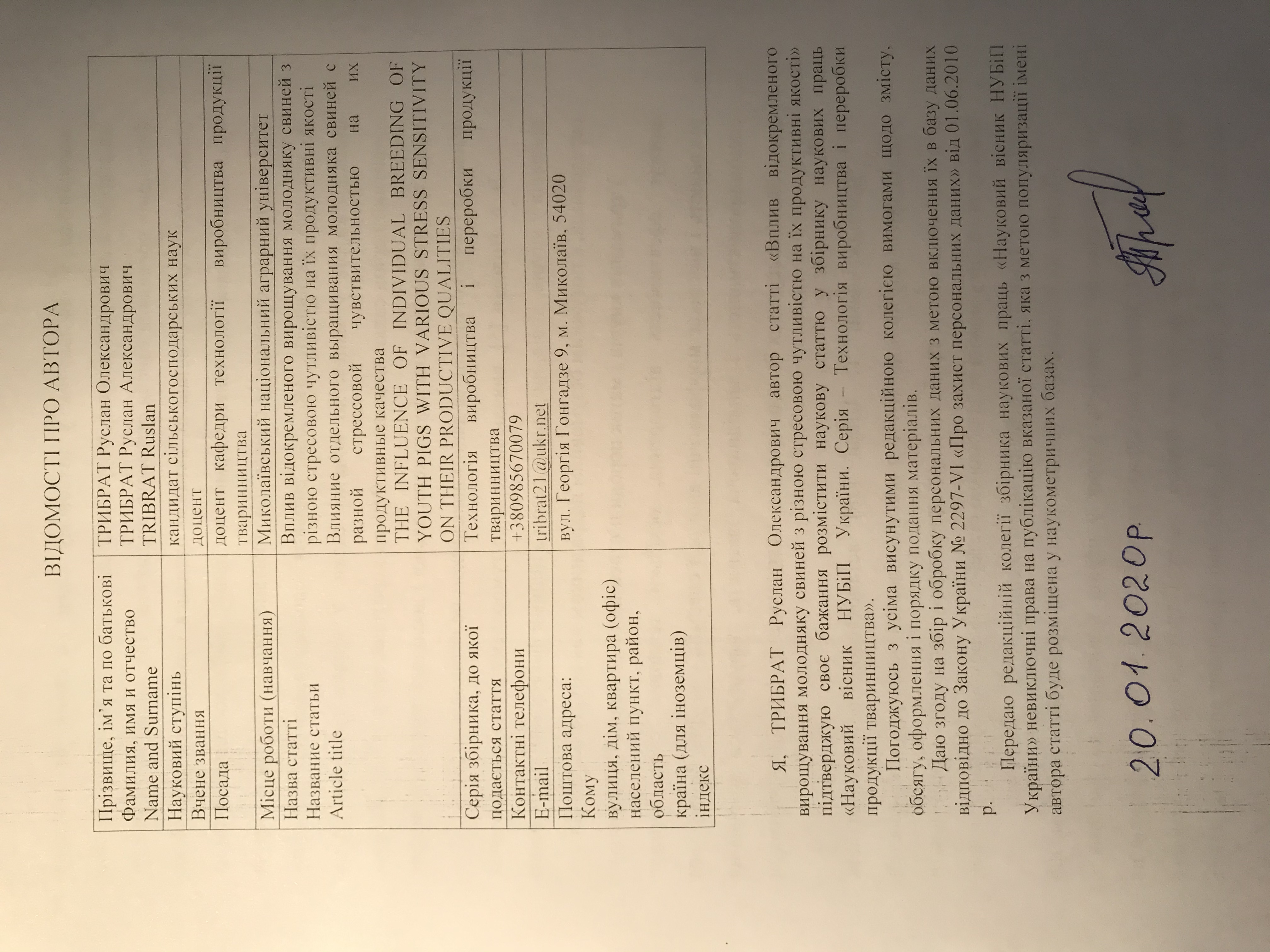 Topikha, V. S. , Trybrat, R. O., Luhovyi, S. I., Lykhach V. Ya. et al. (2008). M'iasni henotypy svynei pivdennoho rehionu Ukrainy (monohrafiia) [Meat genotypes of pigs in the southern region of Ukraine (Monograph)]. Mykolaiv. MDAU. 350. (In Ukrainian).