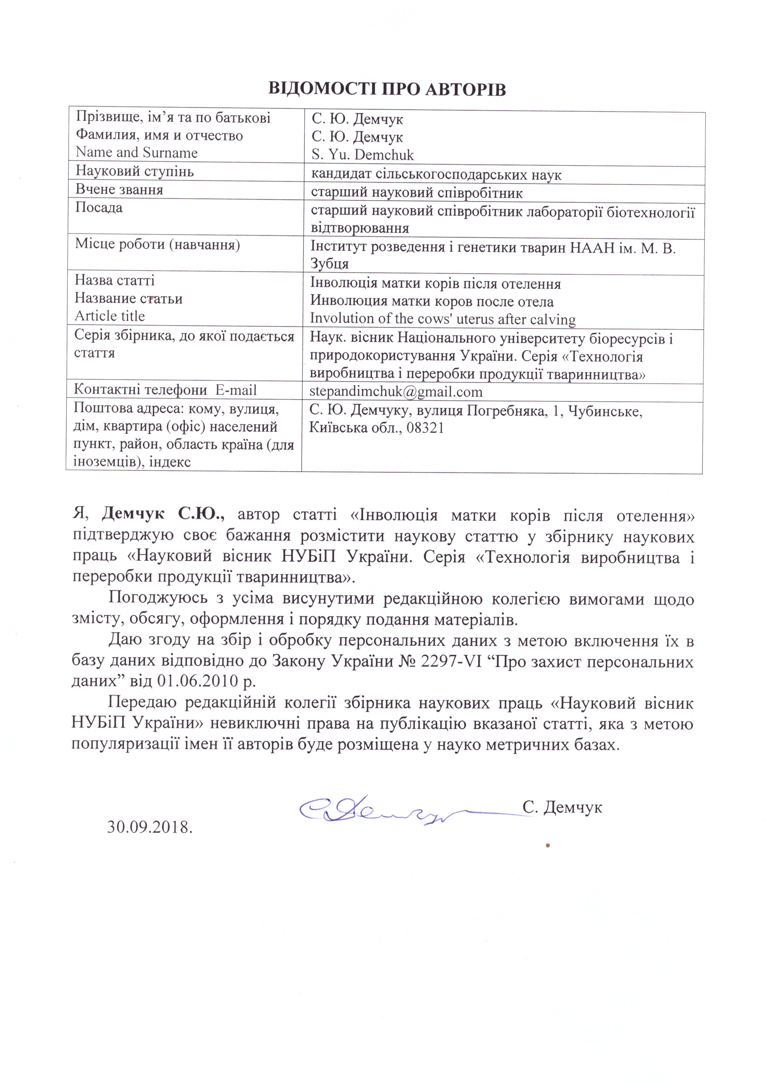 Корейба, Л. В. Особливості перебігу тільності, отелення та післяотельного періоду у корів чорно-рябої голштинської породи в умовах ПрАт «Агро-Союз» Синельниківського району Дніпровської області. ?ваново. Научный мир. 2017. Вып. 48. Т. 2. – С. 84-88.