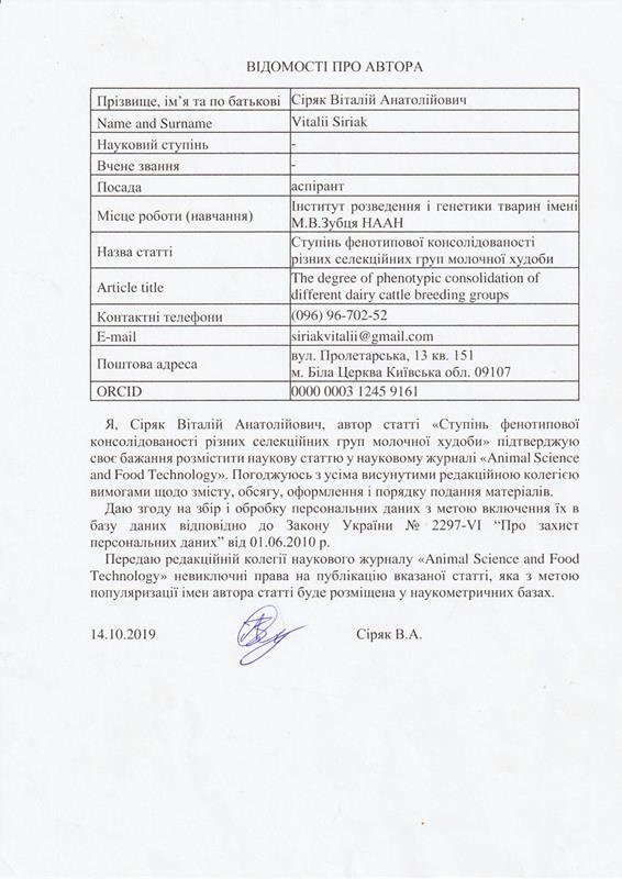 Ivanov, I. A. (2016). Otsinka fenotypovoi konsolidatsii tekhnolohichnykh pokaznykiv pervistok holshtynskoi ta ukrainskykh chorno-riaboi i chervono-riaboi molochnykh porid. [Estimation of phenotypic consolidation of technological indicators of first-calf cows in Holstein and Ukrainian Black and White and Red and White dairy breeds].Visnyk Dnipropetrovskoho derzhavnoho ahrarno-ekonomichnoho universytetu. Dnipropetrovsk, 4 (42),52-55.