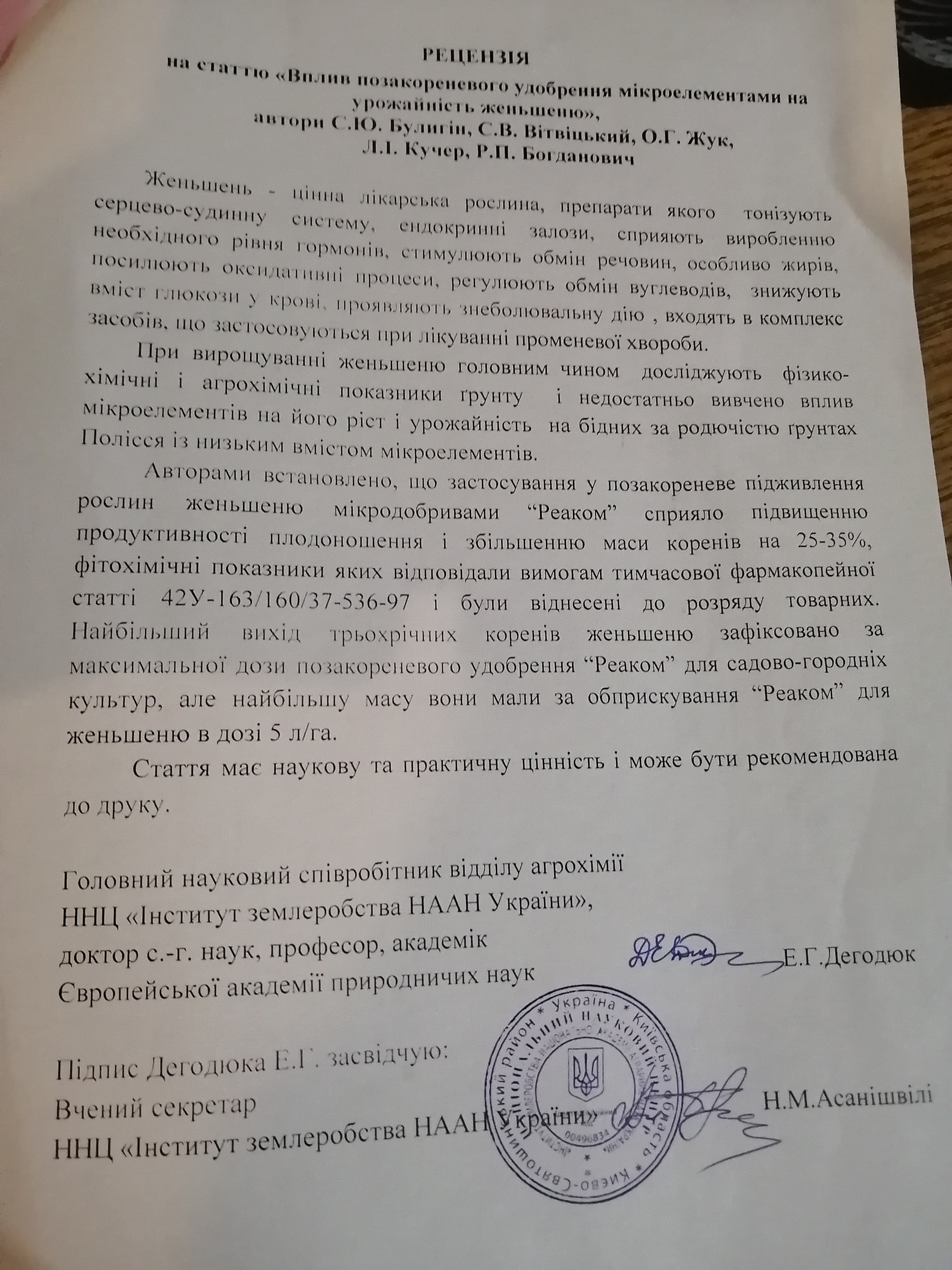 soil, productivity, fruiting, ginseng, foliar top dressing, microelements, Reakom