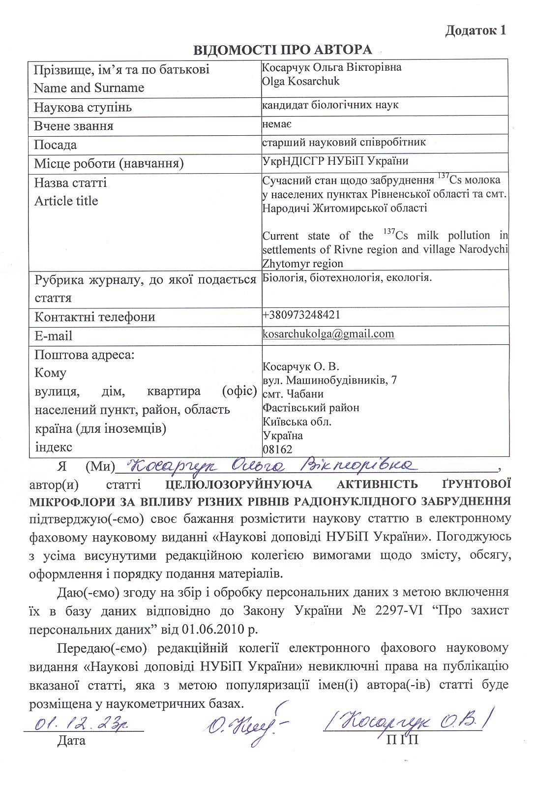 Maloshtan I., Polishchuk S., Kashparov V., Yoschenko V. (2017). Assessment of radiological efficiency of countermeasures on peat-bog soils of Ukrainian Polissya // Journal of Environmental Radioactivity, Volumes 175–176, September 2017, Pages 52–59. http://doi.org/10.1016/j.jenvrad.2017.03.026