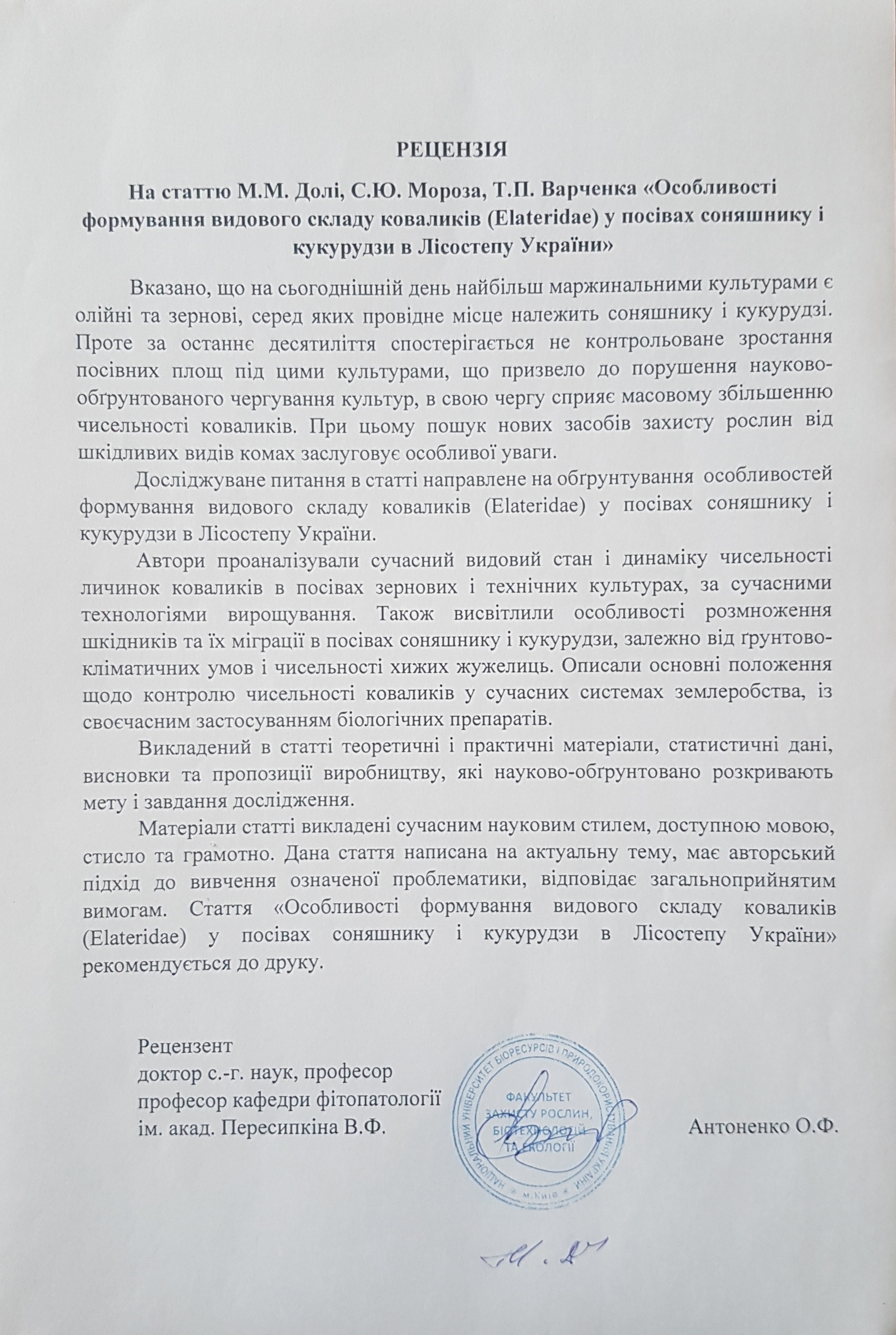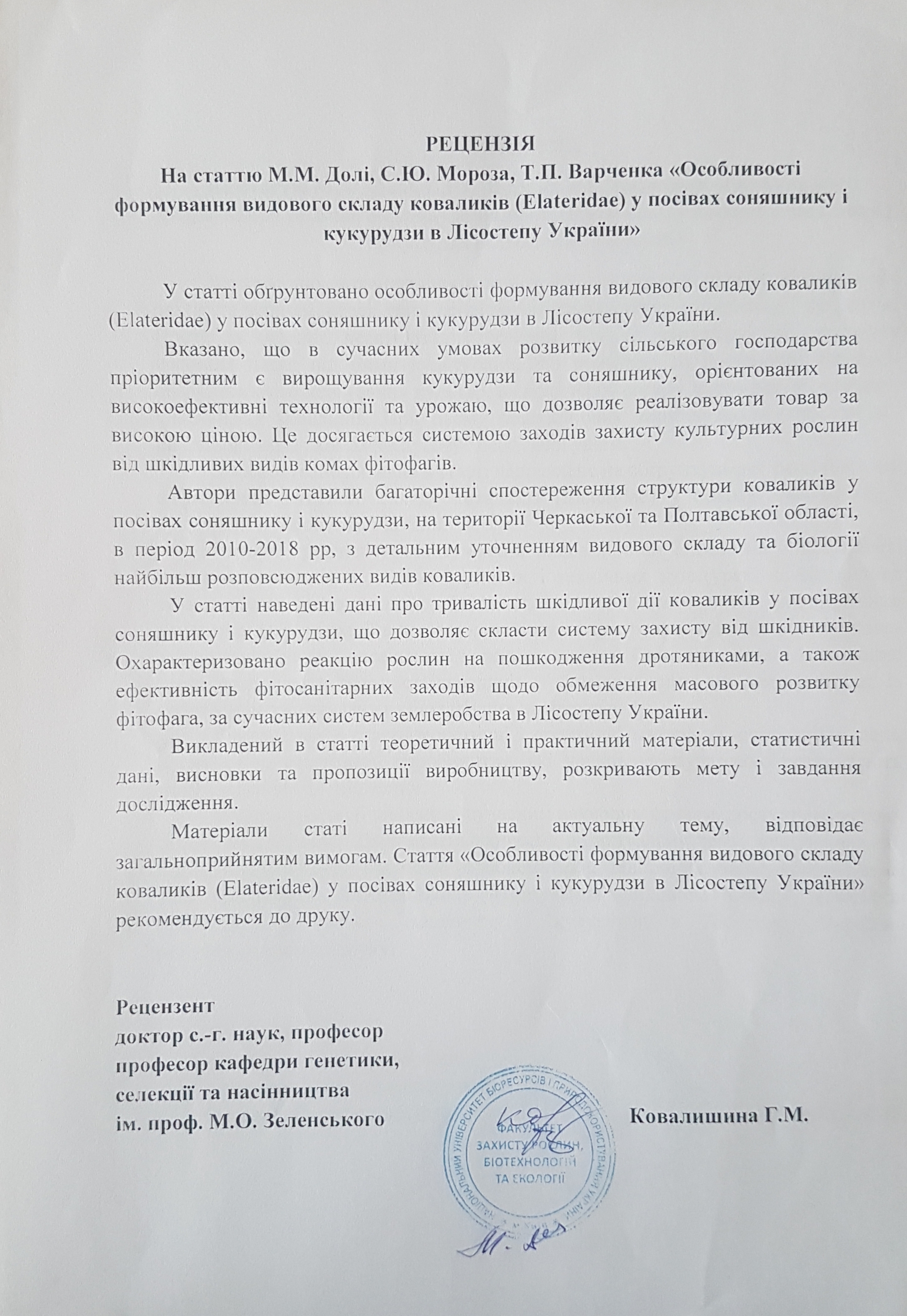 • M. Dolia, National University of Life and Environmental Sciences of Ukraine