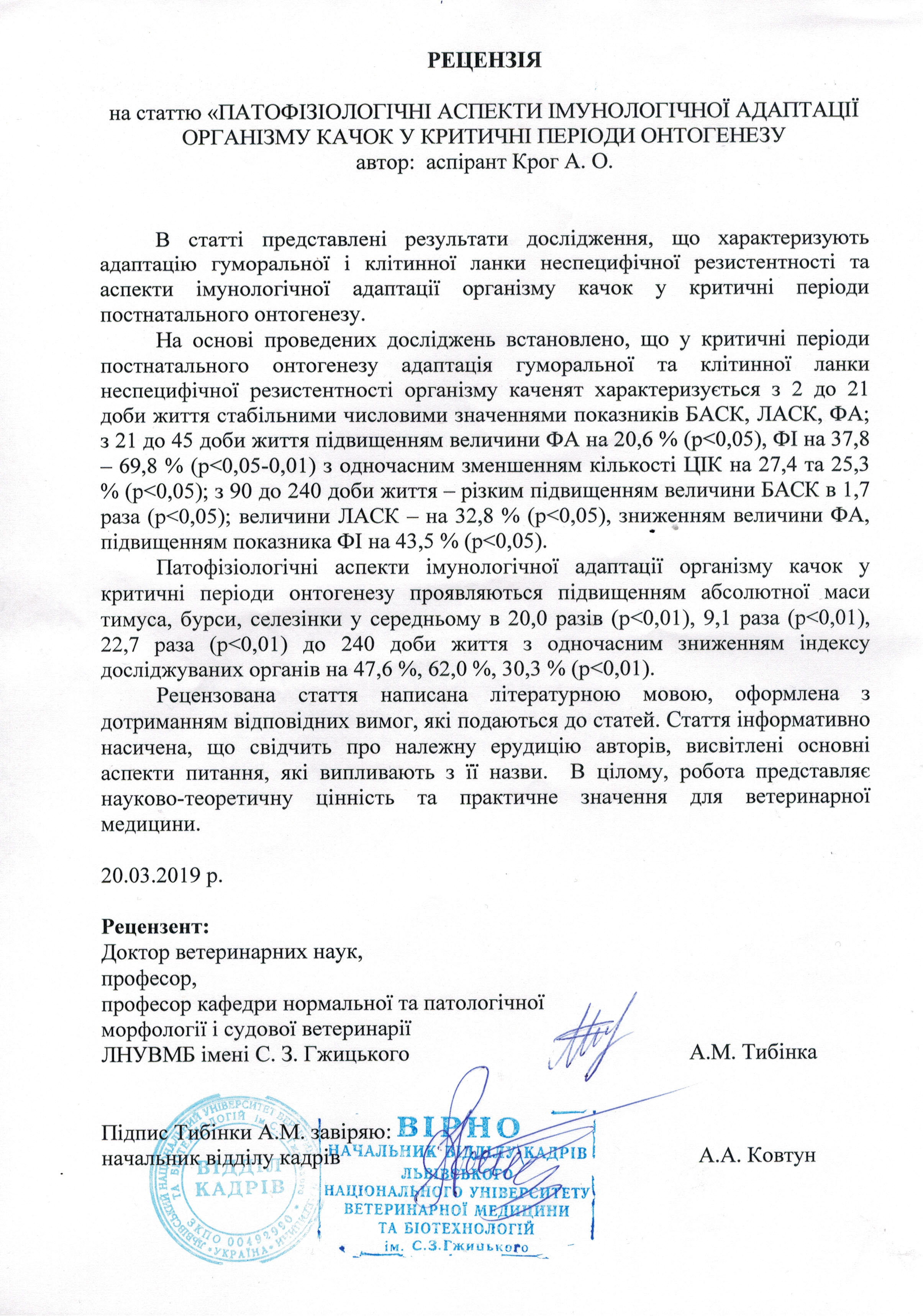 Stojanowskij W., Krog A., Kolomijets I. (2018). Pathophysiological mechanisms of adaptation of the ducks organism for action of transport stress. Międzynarodowa konferencja naukowa "Lwowsko-wrocławska szkoła weterynaryjna". Wrocław, S.255-261.