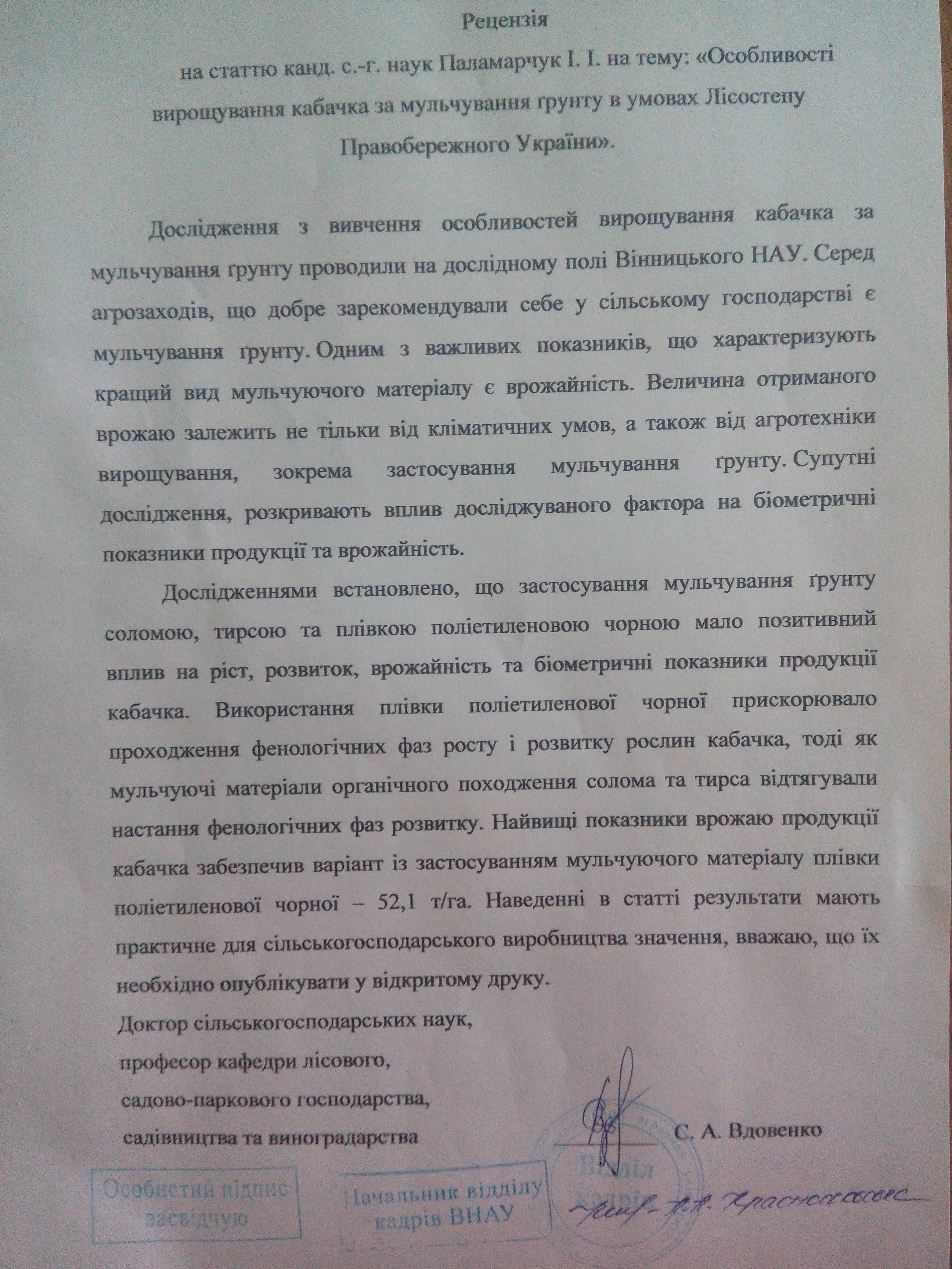 Особливості вирощування кабачка за мульчування грунту в умовах Лісостепу Правобережного України
