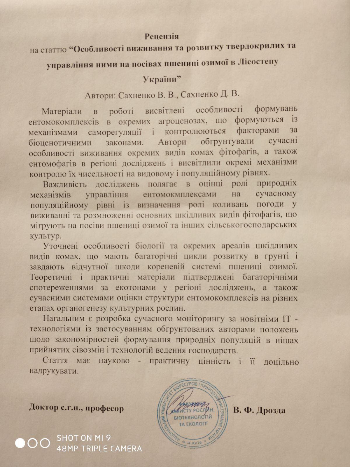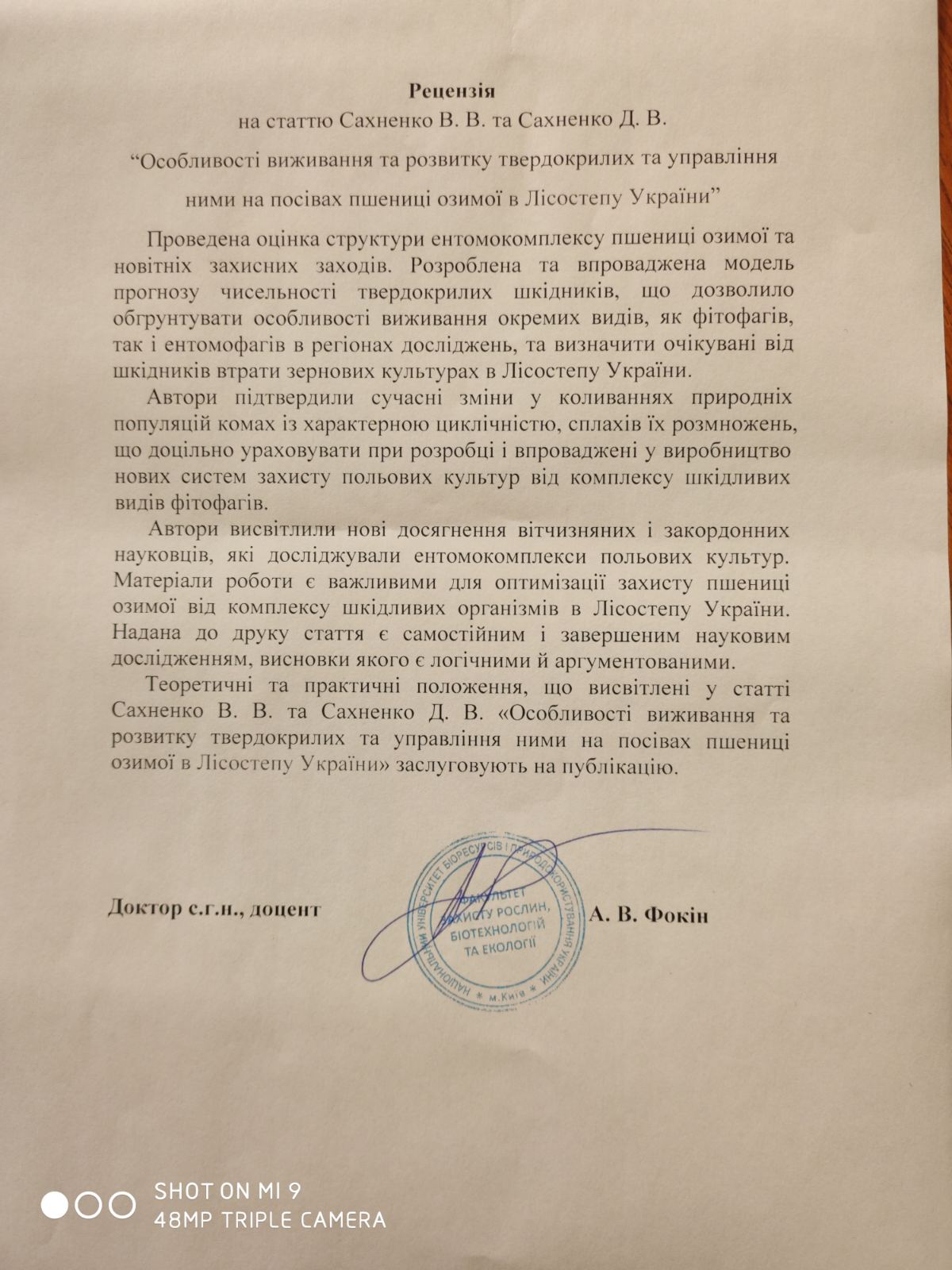 Pokosy, Y. T., Pisarenko, V. M., Dovgan, S.V., Dolya, M. M., Mamchur, R. M., Bondareva, L. M. & Pasichnik L.P. (2010). Monitorynh shkidnykiv silskohospodarskykh kultur [Monitoring of pests of agricultural crops]. (p. 223), Ahrarna osvita. [in Ukrainian]