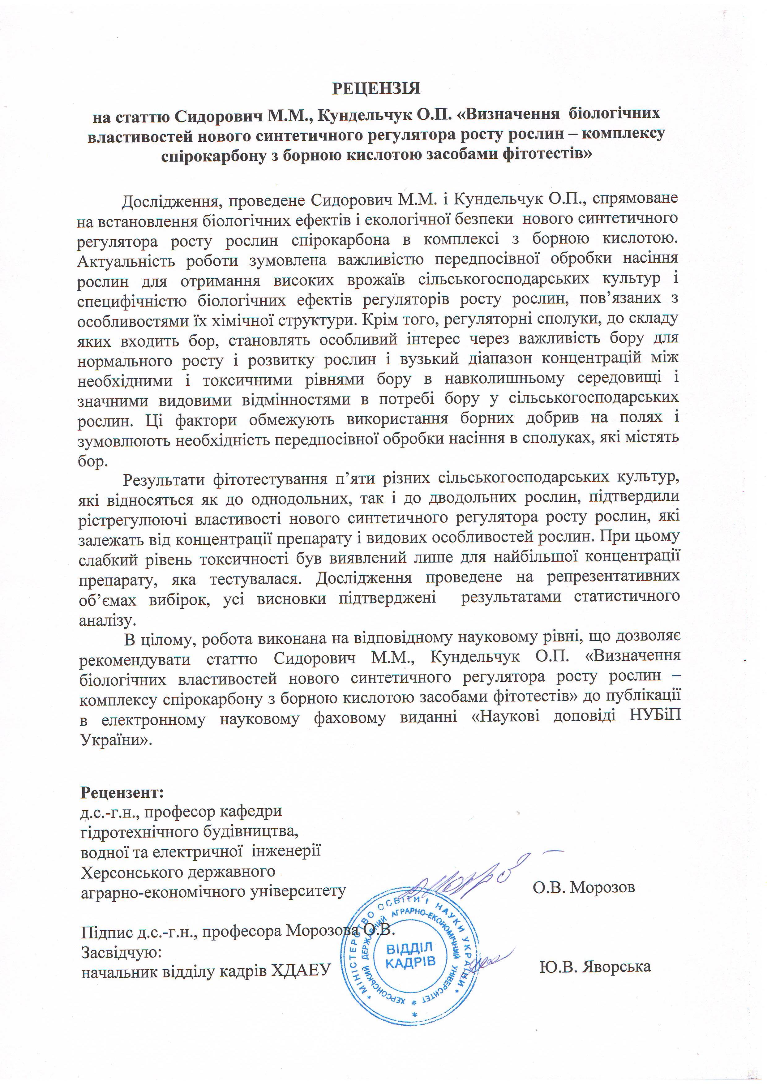Bakancha, M. V., Gladkov, A. O., Sidorovich, M. M. (2015). Determination of biostimulating properties of chemicals from the class of bicyclic urea by means of phytotesting. Biological research-2015: Collection of scientific works. Zhytomyr: PE "Ruta". 225-228 (in Ukrainian).