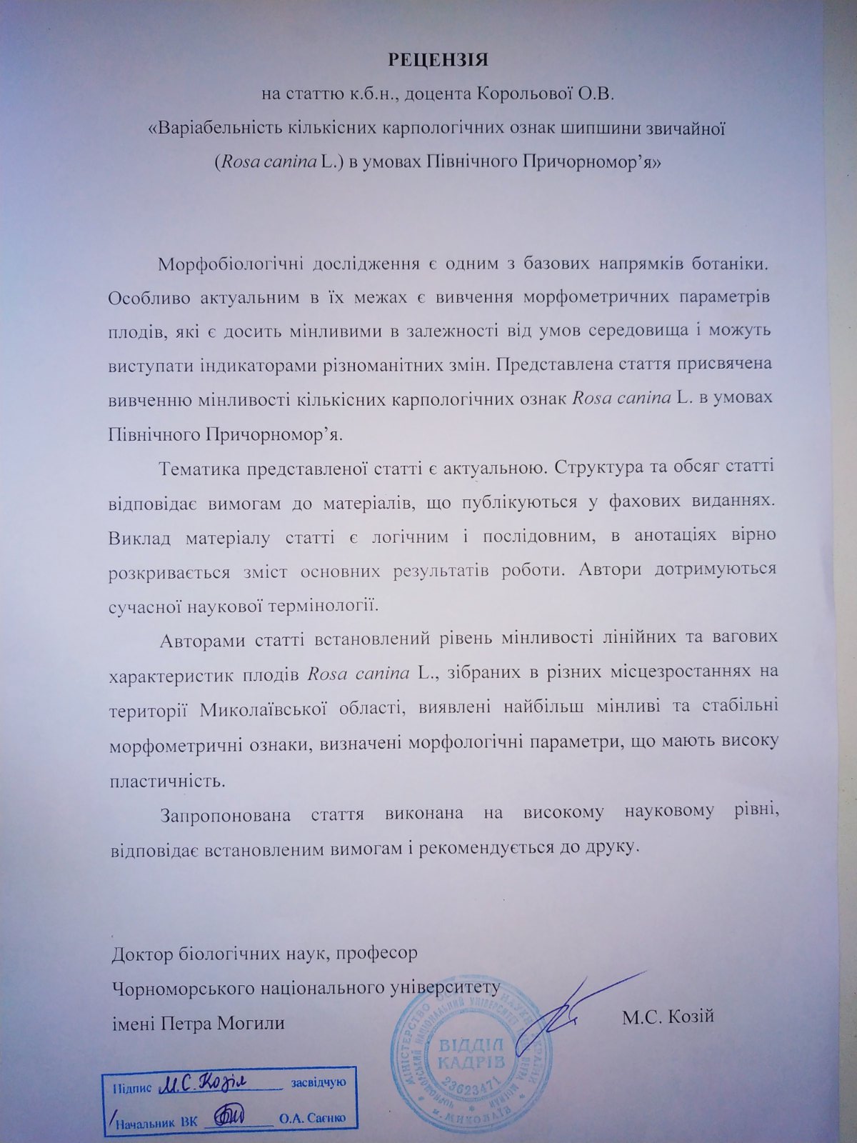 Rosa canina, морфометричні параметри, рівень мінливості, Північне Причорномор’яАнотація