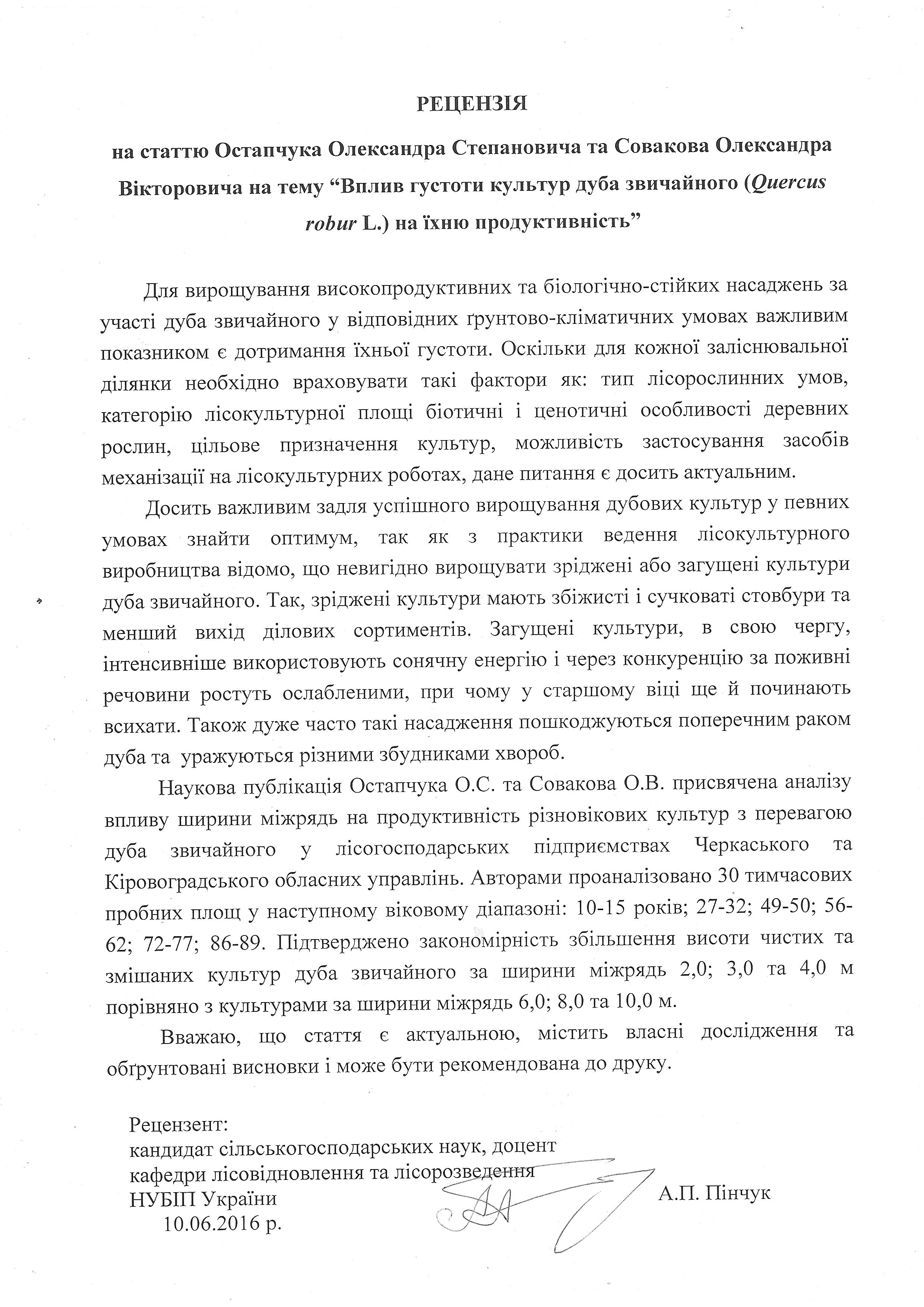 Ключові слова: дубові насадження, ширина міжрядь, густота культур, продуктивність.