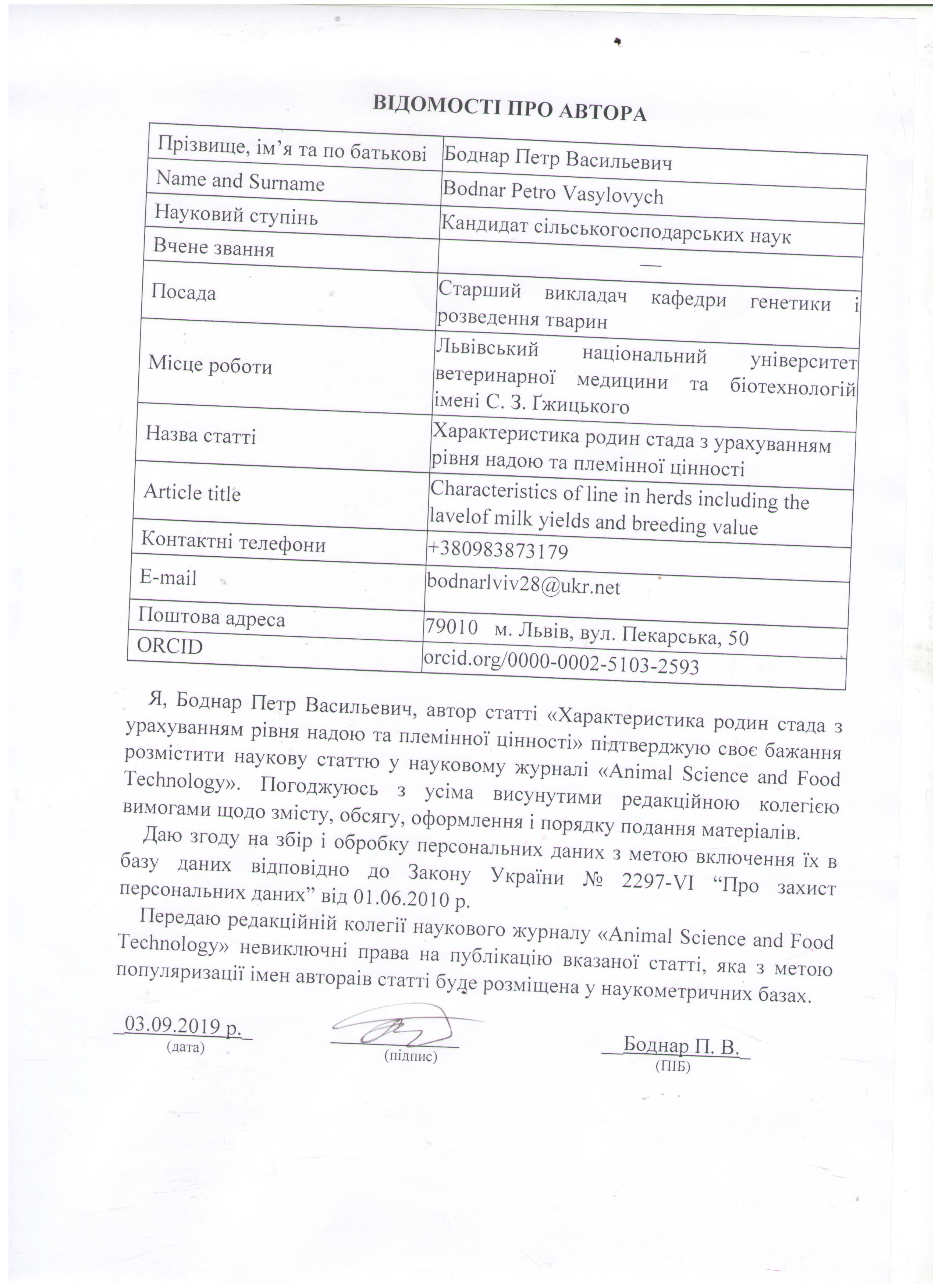 Pelekhatyi, M. S., Piddubna, L. M. (2008). Особливості розведення імпортної чорно-рябої німецької худоби за родинами [The breeding of imported White-and-Black German cattle by families]. Scientific Messenger LNUVMBT named after S.Z. Gzhytskyj. Т. 10, № 2 (37), 3, 127-135.