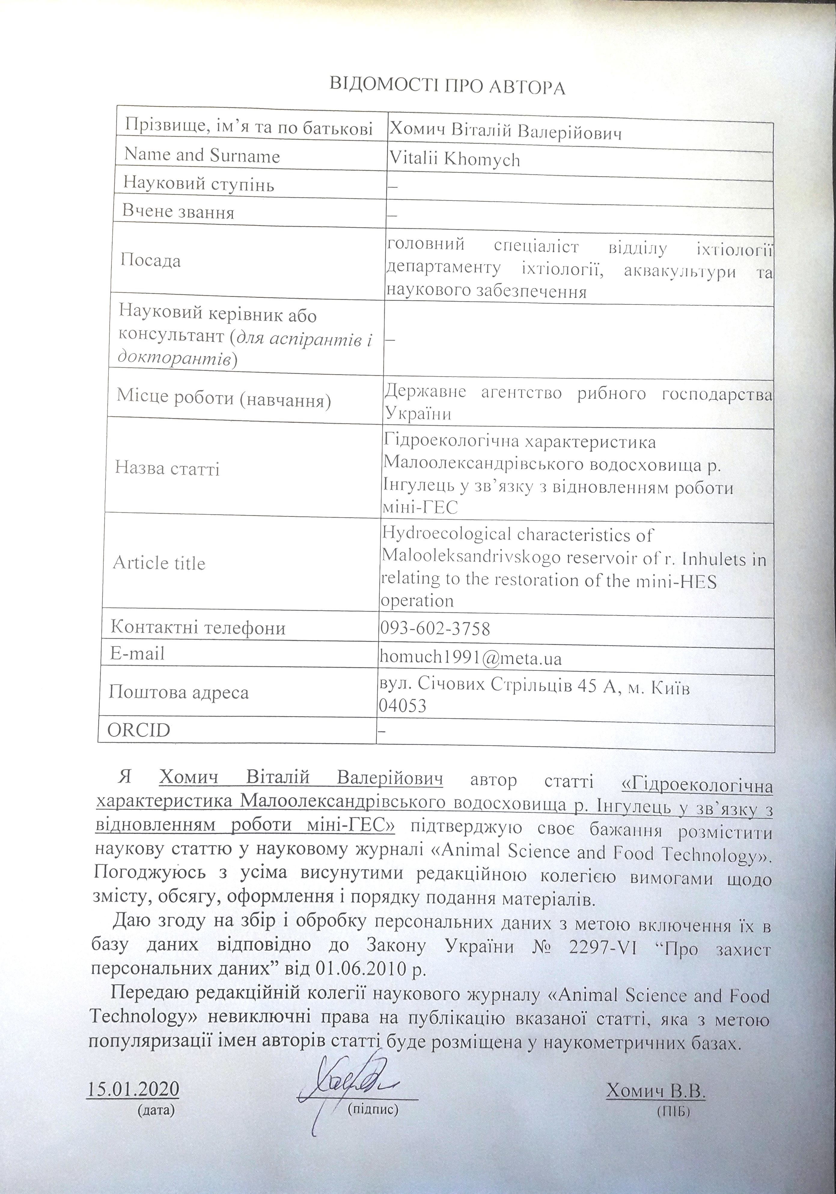 - Гідроекологічна характеристика Малоолександрівського водосховища р. Інгулець у зв’язку з відновленням роботи міні-ГЕС (Ukrainian)
