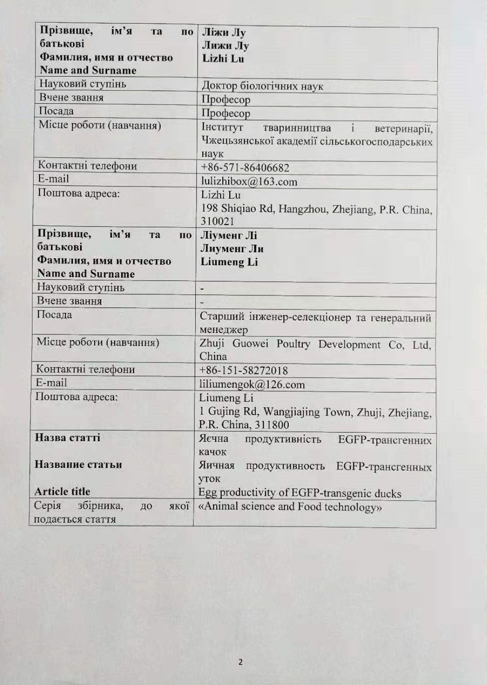 • автор Lizhi Lu, афіліація Institute of Animal Husbandry and Veterinary Science, Zhejiang Academy of Agricultural Sciences, Інститут тваринництва і ветеринарії, Чжецьзянської академії сільськогосподарських наук