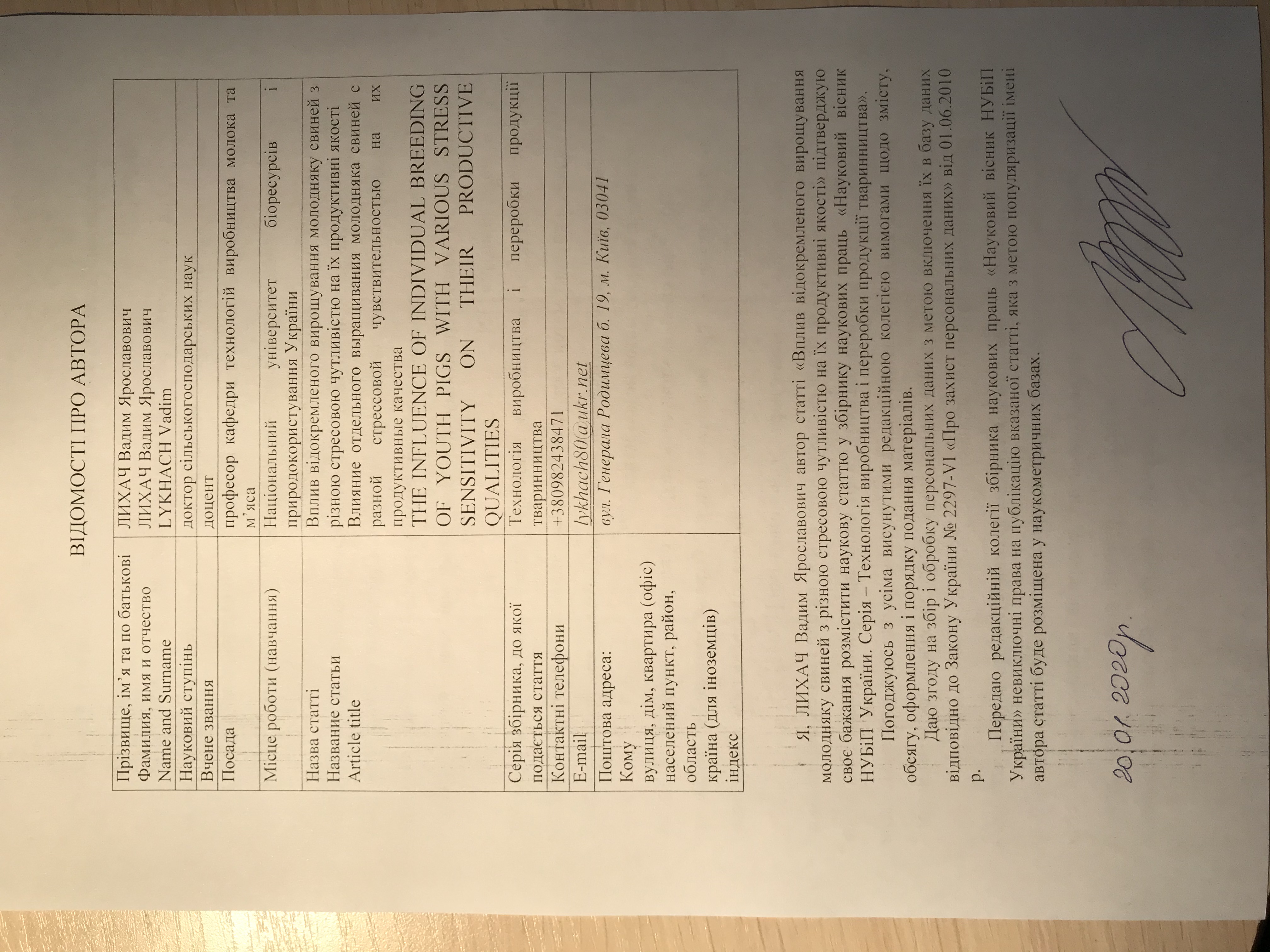 • автор V. Ya. Lykhach, афіліація Національний університет біоресурсів і природокористування України