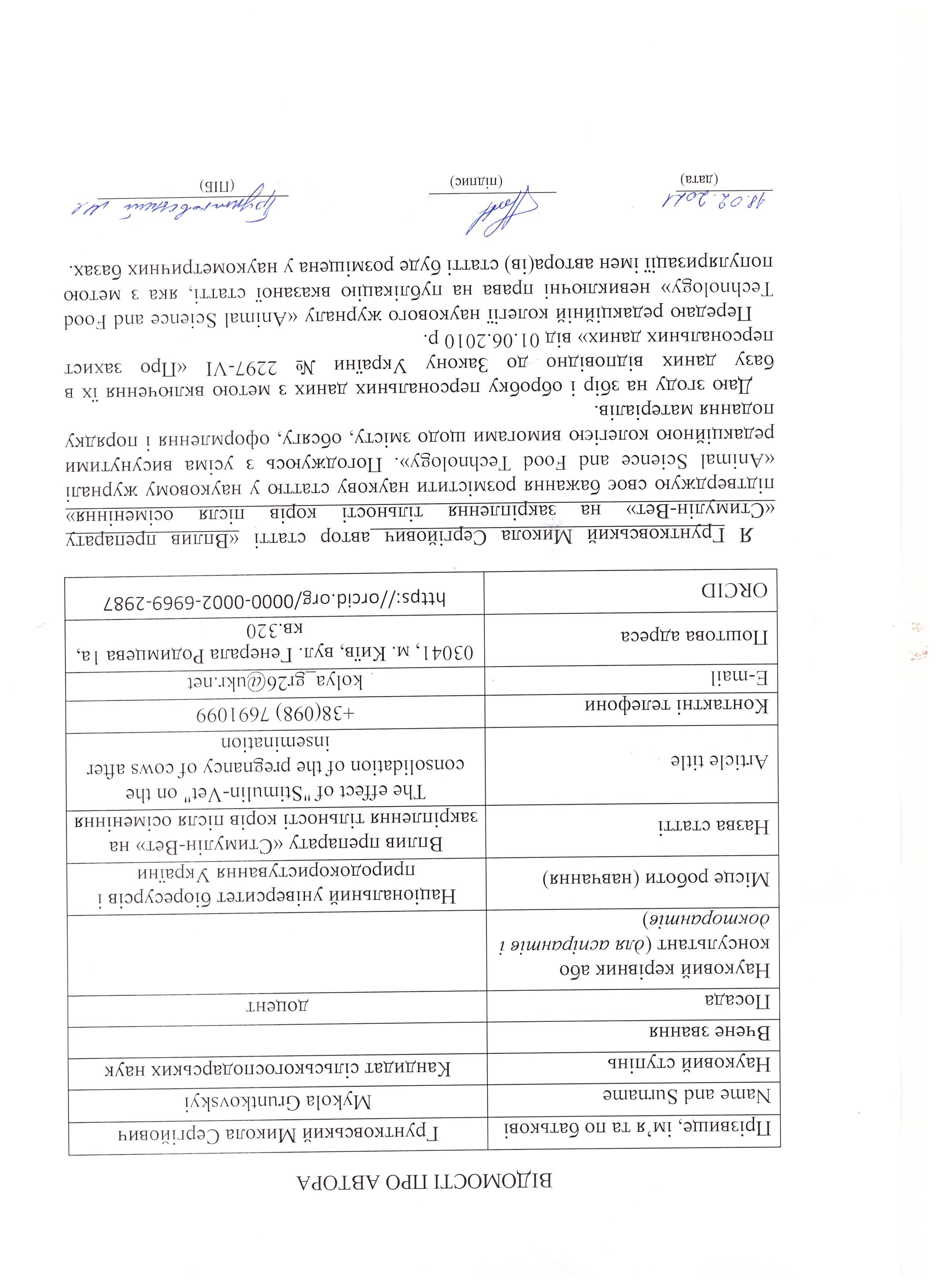 Yablonsky, V. (2007) Problemy vidtvorennia tvaryn [Problems of animal reproduction]. Veterinary medicine of Ukraine. (3). 42-43. (in Ukrainian)