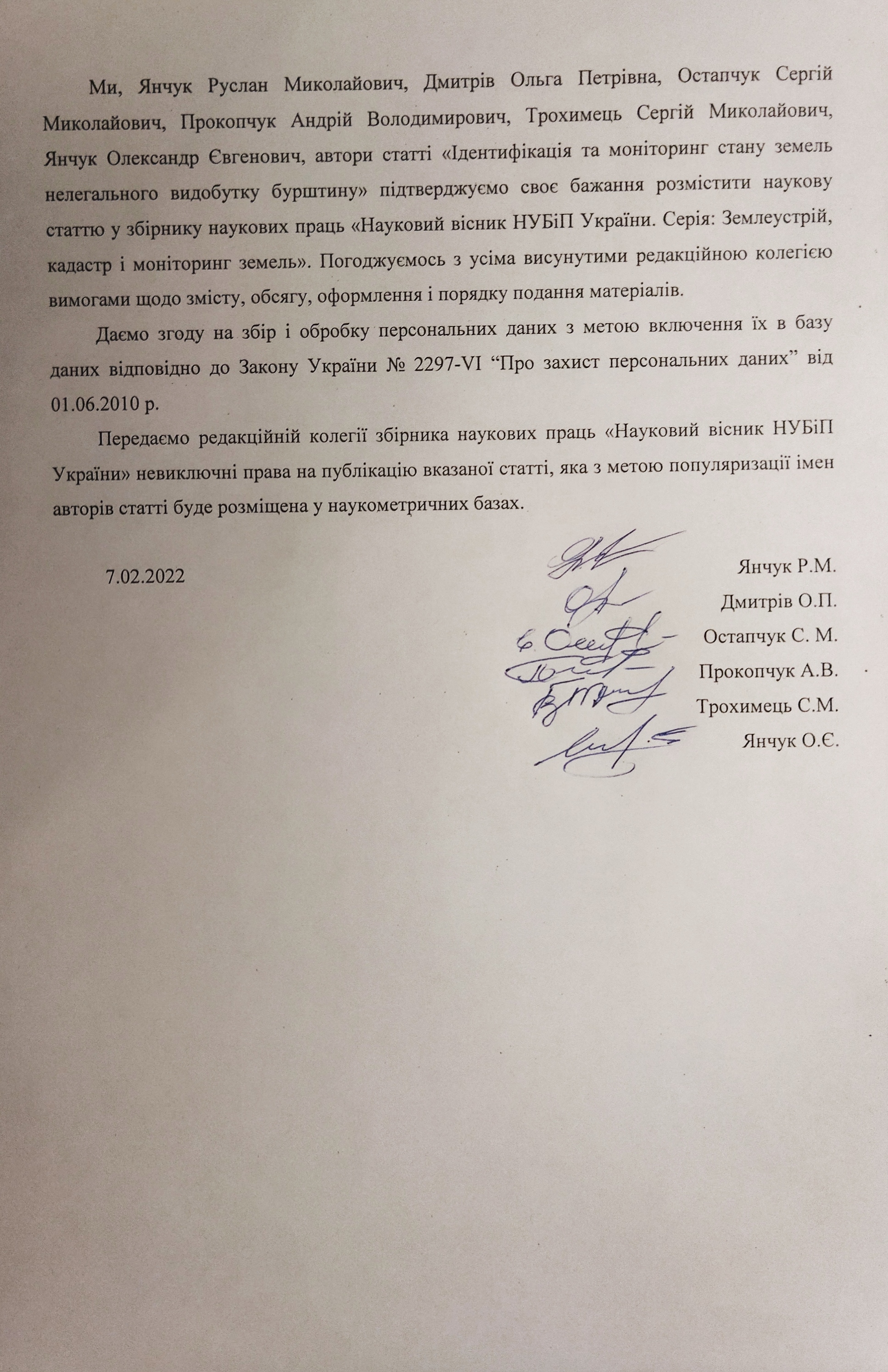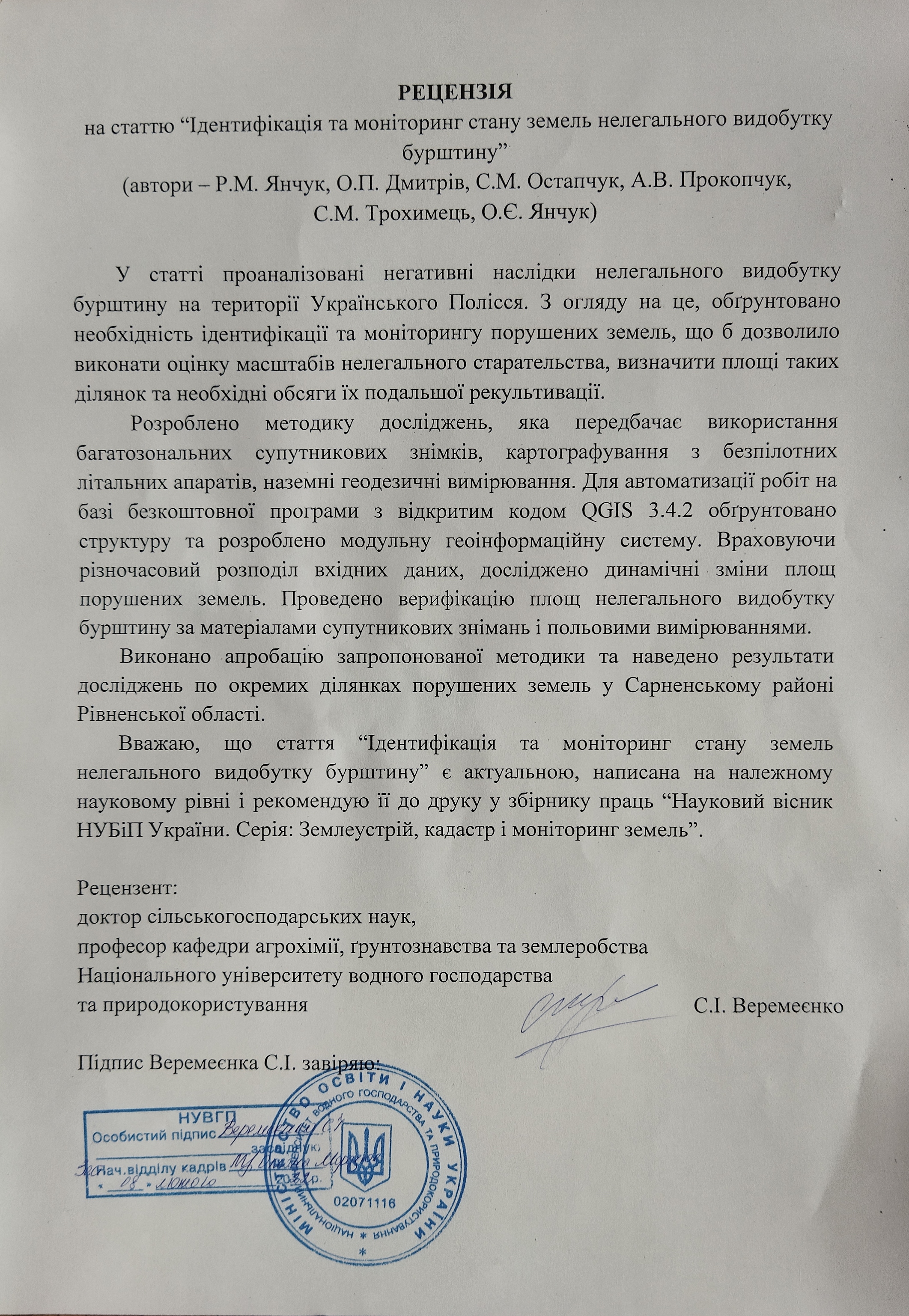 Yanchuk R., Dmytriv O., Trokhymets S. et al. (2020). Rozroblennia metodyky rozrakhunku kilkisnykh ta yakisnykh vtrat pryrodno-resursnoho potentsialu porushenykh zemel vnaslidok nezakonnoho vydobutku burshtynu. Suchasni dosiahnennia heodezychnoi nauky ta vyrobnytstva: zb. nauk. pr. Lviv: vyd.-vo Lvivskoi politekhniky, vyp. II (40). S. 93-101.